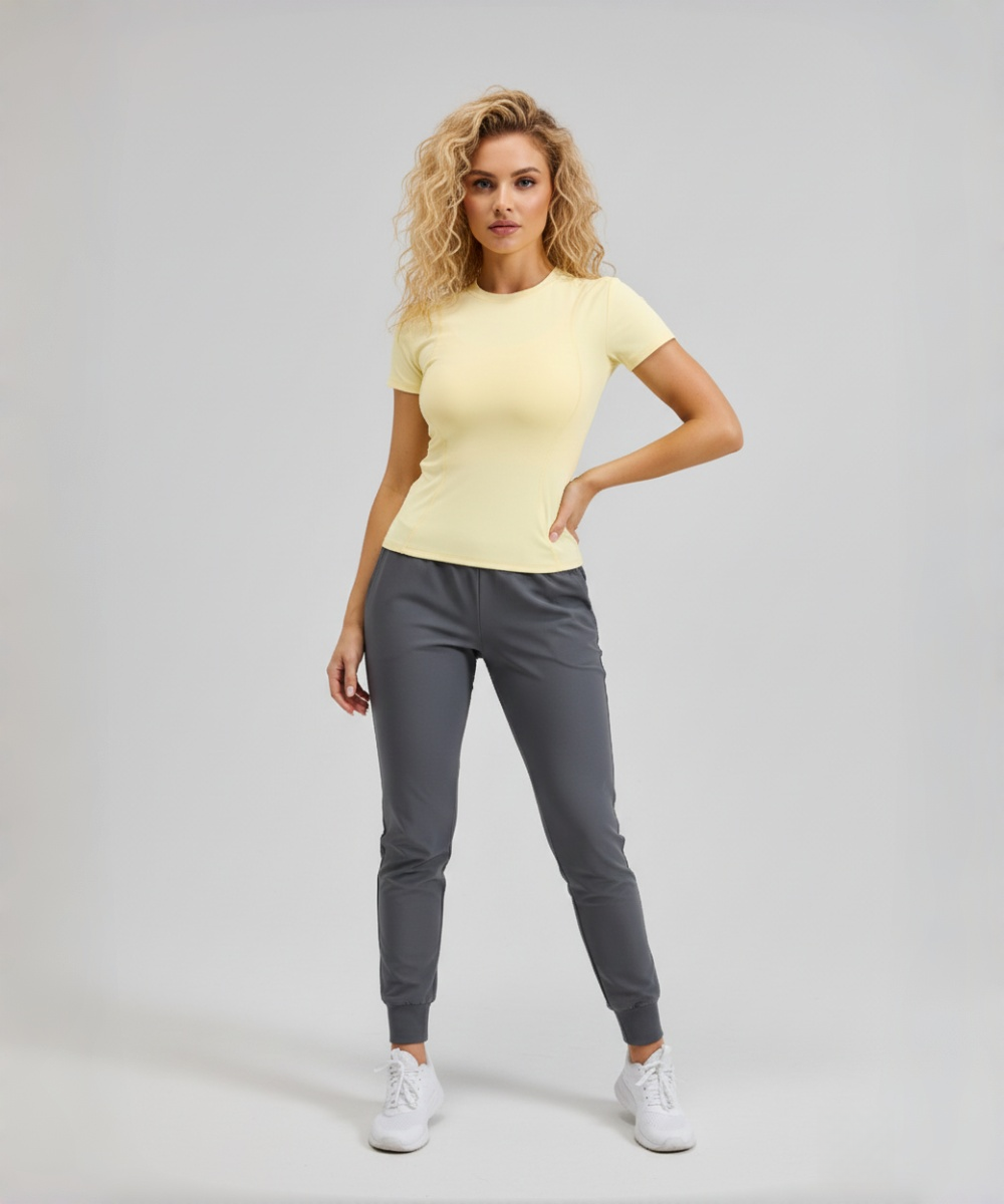 Flexvibe High Elastic Sports Tee Crew Neck Slim Fit Skin-Friendly Figure Flattering